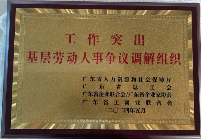 廣東霸王花食品有限公司榮獲“工作突出基層勞動人事爭議調解組織”稱號