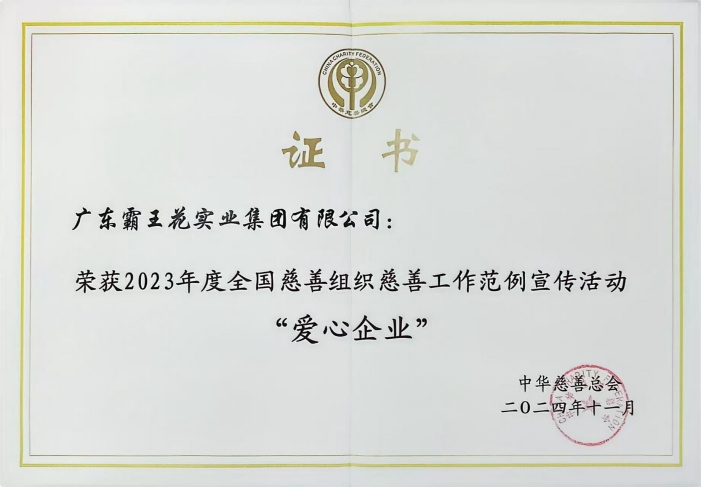 廣東霸王花集團榮獲2023年度全國慈善組織慈善工作范例宣傳活動“愛心企業”