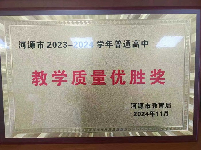 河源市新河實驗學校高中部榮獲“教學質量優勝獎”