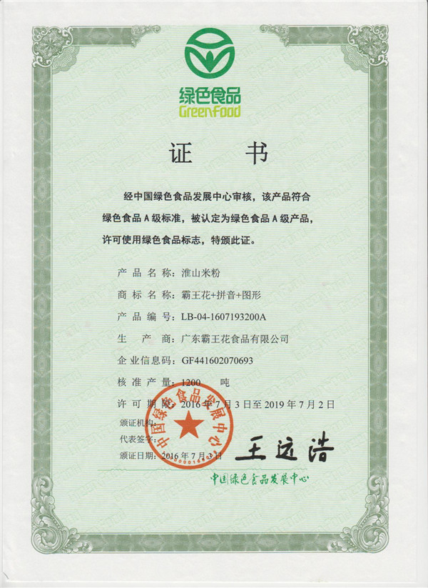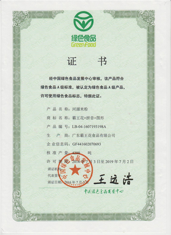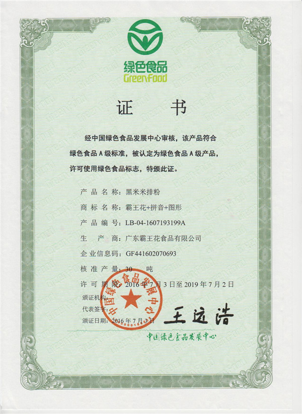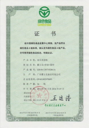經中國綠色食品發展中心審核,該產品符合綠色食品A級標準。被認定為綠色食品A級產品,許可使用綠色食品標志,特頒此證。