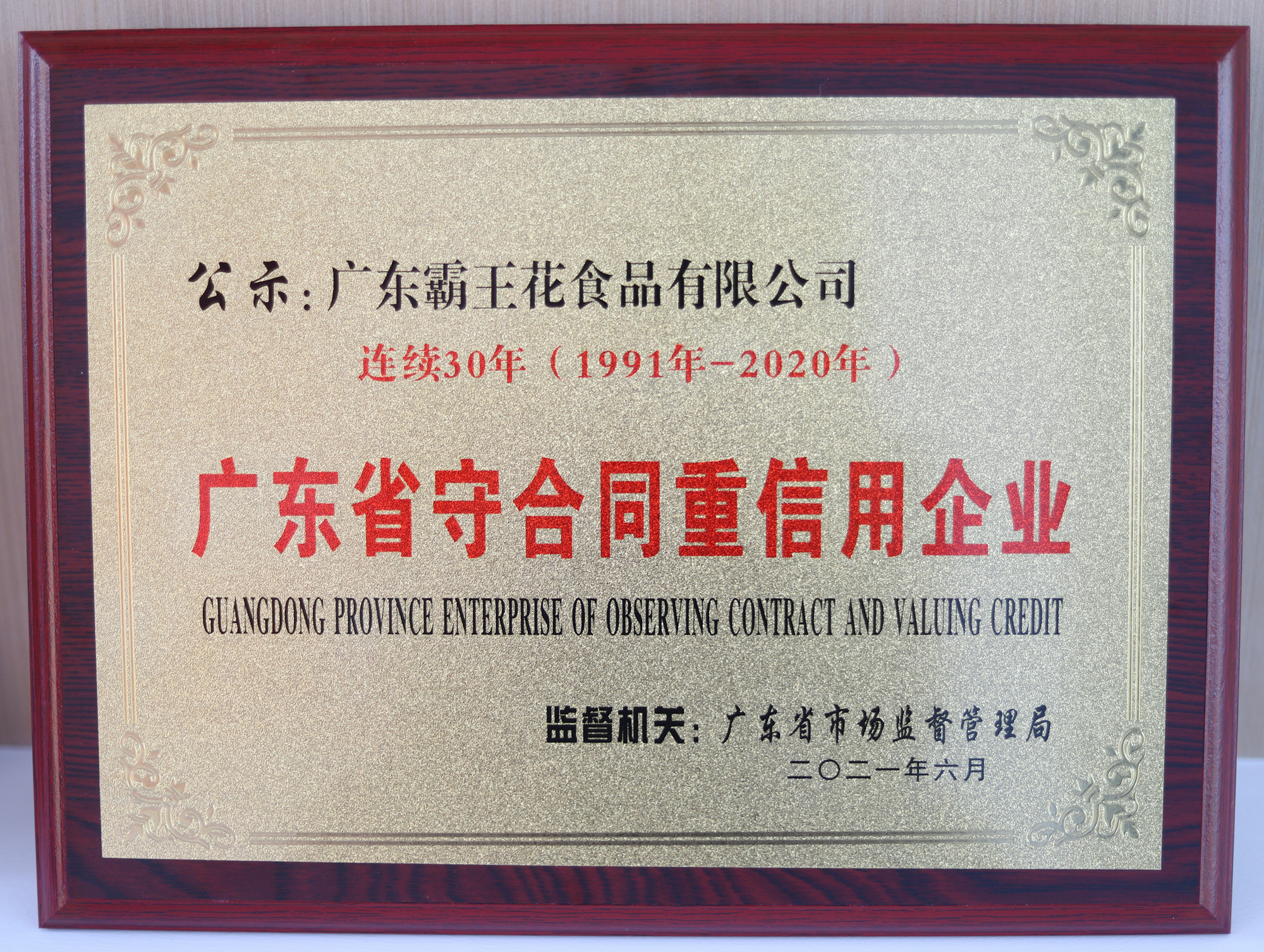 連續30年廣東省守合同重信用企業