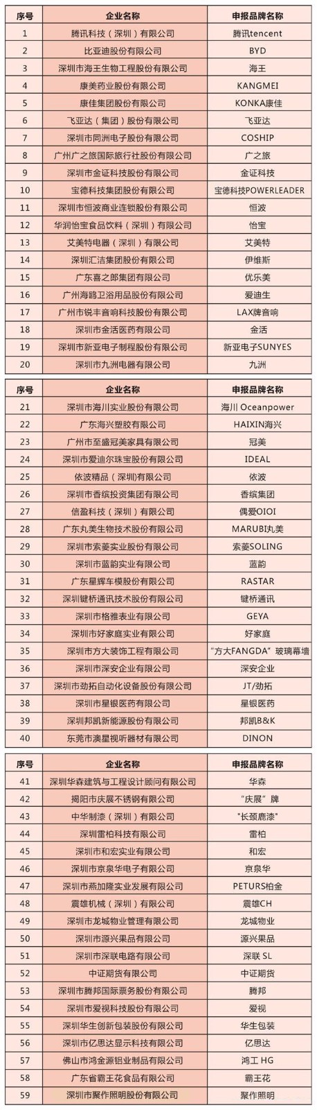 2013年3月7日,首屆“廣東省全國名牌”入選企業名單正式公布,包括騰訊、比亞迪、康佳、海王、飛亞達、喜之郎等在內的59家企業入選“廣東省全國名牌”,我集團旗下廣東霸王花食品有限公司的注冊商標“霸王花”也赫然在烈。同時,包括一覽英才網、深圳中青寶互動網絡股份有限公司等在內的29家企業入選“廣東省全國名牌最具成長性企業”。
