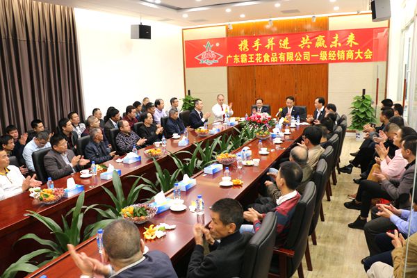 下午15時全國一級經銷商大會于霸王花集團會議室開展,霸王花董事長朱日楊、執行總裁朱榮業、食品公司常務副總吳國才、營銷總監藍國波等出席會議,現場高朋滿座,由集團辦主任吳靜波主持,董事長致辭并將食品公司2016年銷售狀況,集團2016年的回顧及以后的規化發展做出講話,再由執行總裁宣布2016年獲獎項經銷商名單,并向銷量前五名經銷商“杰出貢獻獎”進行頒獎。過后營銷總監藍國波分享突出市場運營模式,讓資源分享。會議結束后經銷商一行參觀了霸王花旗下地產公司、河源中學實驗學校、霸王花食品公司。